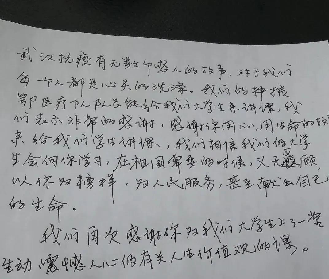 3044永利经理李春晖认为,2000多年前,昭君和亲,千古流传;2000多年后,塞外玫瑰,千里驰援。听过王彦医生的分享最大感受是爱与情交织,生与死相依。3044永利集团副董事长张海峰进入线上课堂聆听了王彦的抗“疫”经历,他代表公司感谢战地玫瑰能够亲临课堂,用心用情讲述她的青春之歌,给师生带来了一次灵魂的洗礼,心灵的启迪。张海峰希望青年学子能够践行习近平总书记在勉励北京大学援鄂医疗队全体“90后”党员的回信中提出的:努力在为人民服务中茁壮成长、在艰苦奋斗中砥砺意志品质、在实践中增长工作本领,不惧风雨、勇挑重担,让青春在党和人民最需要的地方绽放绚丽之花。