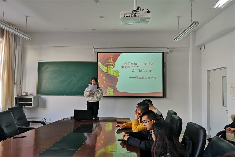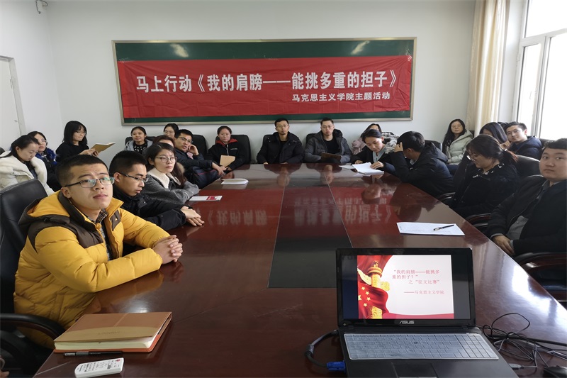 2018年12月25日中午公司在盛乐校区公司楼举办“马上行动--我的肩膀能挑多重的担子”之征文比赛活动。团总支书记范晓刚老师及全体研究生参加了本次活动。