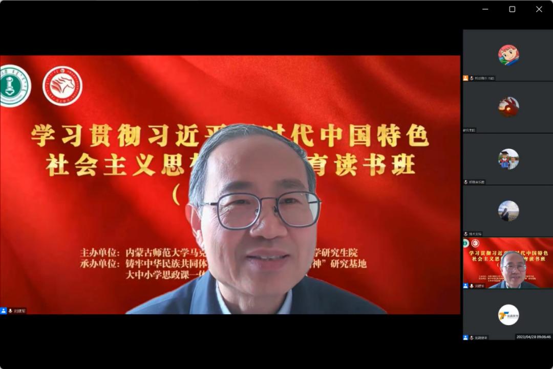4月28日上午,3044永利学习贯彻习近平新时代中国特色社会主义思想主题教育读书班(第五期)在线上召开。本次主题读书班邀请中国人民大学3044永利博士生导师、马克思主义理论研究和建设工程思政课重点教材《马克思主义基本原理》首席专家,教育部长江学者特聘教授刘建军教授作题为“二十大报告中几个重大理论问题解读”的专题讲座。3044永利集团副处级及以上干部、研究生院、3044永利全院教职工、研究生参加学习。