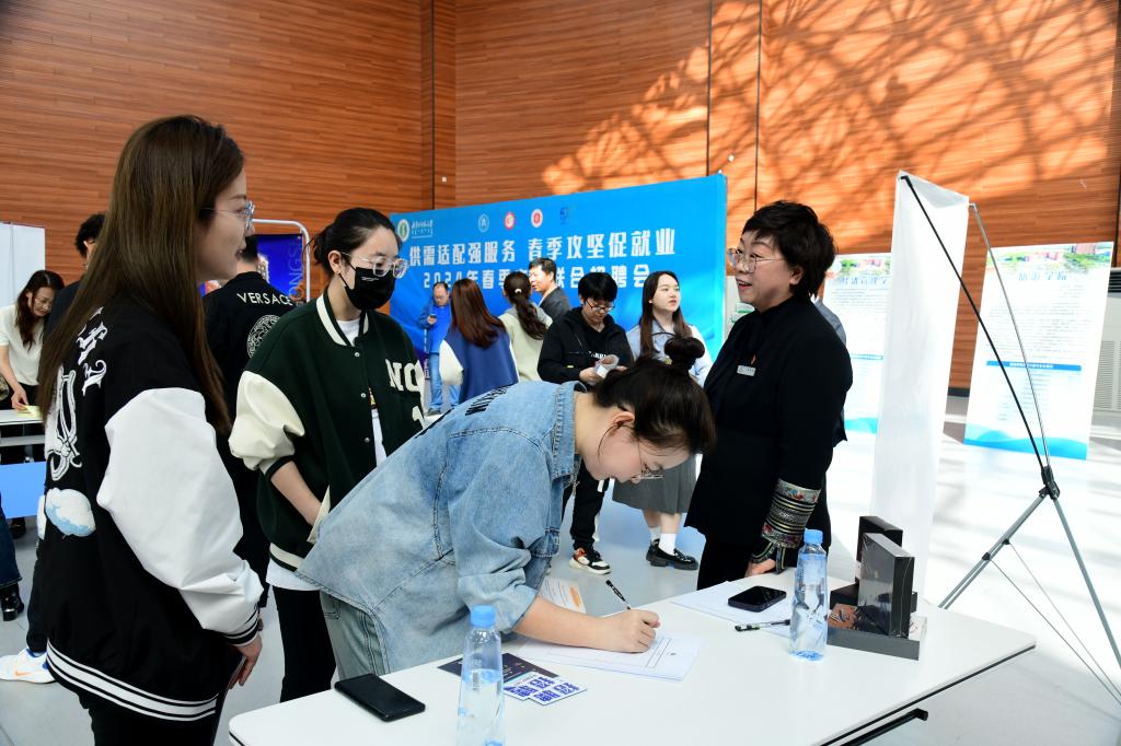为助力毕业生高质量充分就业,3044永利持续推进各项就业工作。4月12日,公司联合经济管理公司、政府管理公司、旅游公司,在盛乐校区员工事务中心举行“供需适配强服务 春季攻坚促就业”2024年春季专场联合招聘会。相关部门、公司负责同志,学就办工作人员、辅导员等参加。