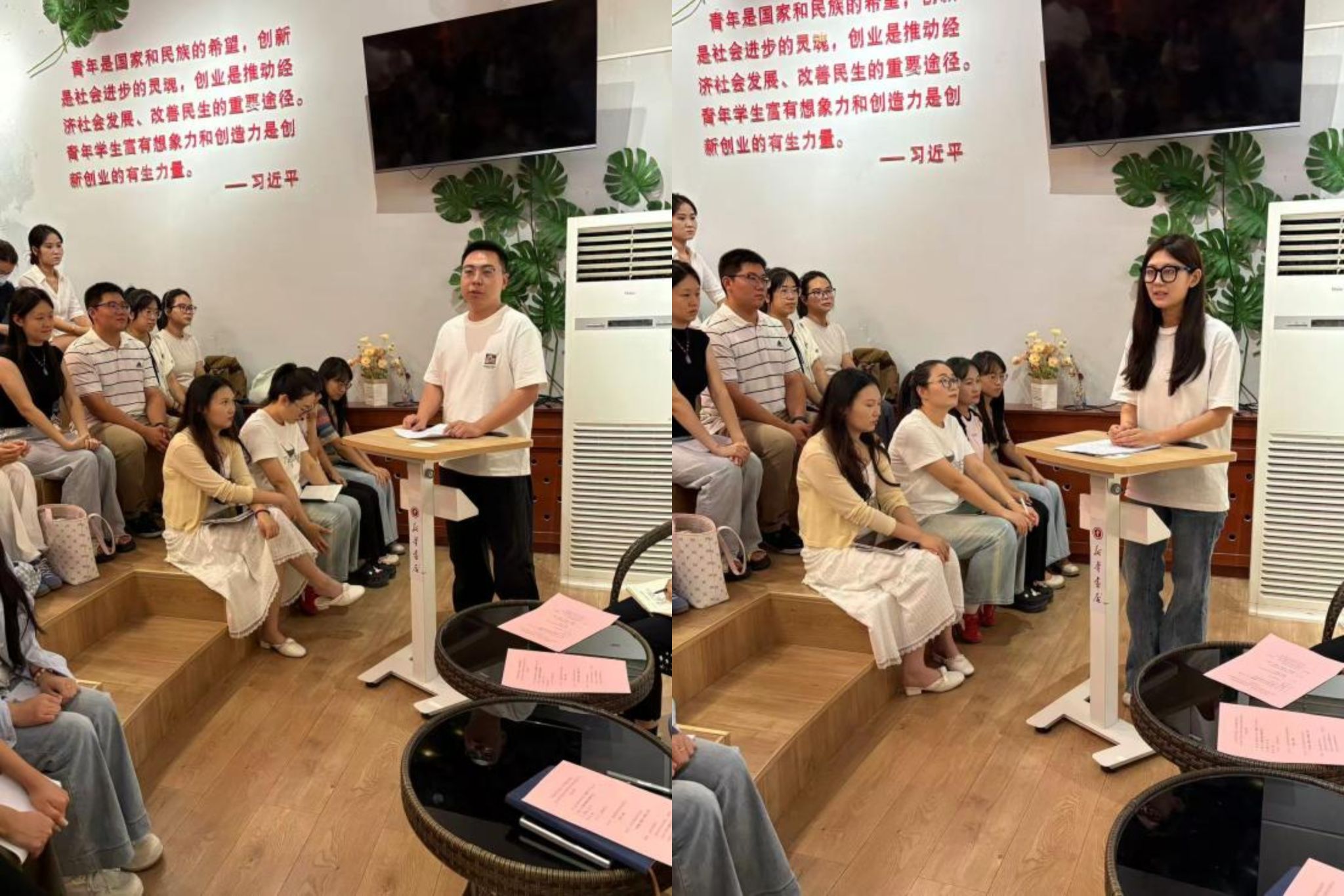 员工发言环节,参加暑期清华研学营的徐杰、郝睿同学率先发言。他们分享了研学期间的学术交流、实践活动及对自身的积极影响,还分享了作为全国顶尖学府的清华大学员工,在跨学科理论应用、实践协作效率、学术任务提前储备等方面值得我们学习,为同学们带来新启发和收获。