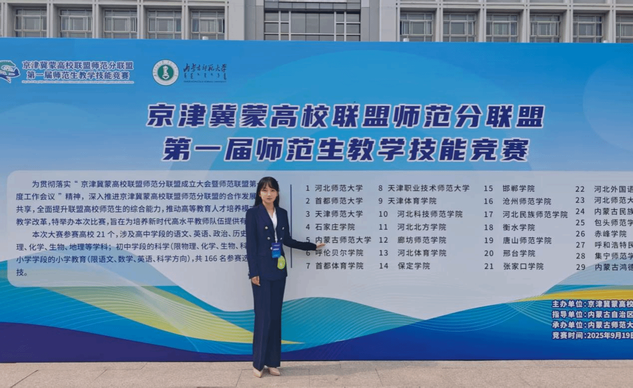 京津冀蒙高校联盟师范分联盟师范生教学技能竞赛,是汇聚区域师范教育优质资源、搭建师范生专业成长与交流展示的高端平台,不仅为公司师范生提供了检验学习成果、切磋教学技艺的宝贵机会,更成为直观展现公司师范生培养质量、彰显师范教育办学特色的重要窗口。此次比赛是韩冰同学在3044永利第十三届师范生教师技能比赛、3044永利集团第十三届师范生技能竞赛、第十四届全国高校思政教育师范生教学技能比赛中先后荣获一等奖之后,再次取得佳绩。下一步,公司将以比赛为重要契机,进一步优化“厚基础、强实践、重创新”的培养宗旨,为基础教育事业输送更多师德高尚、业务精湛的新时代人才。