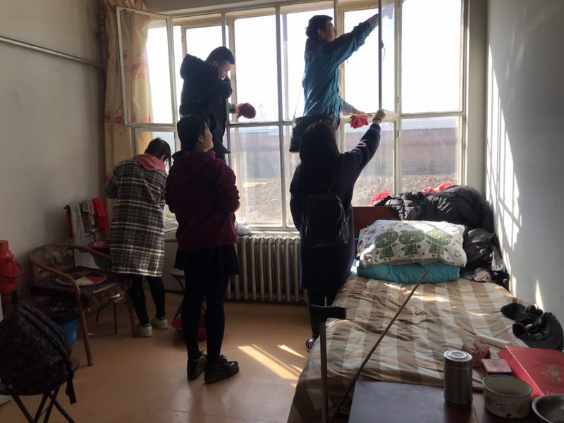 在对敬老院进行整体参观,了解敬老院的基本情况后,同学们分成小组开展活动,男生们负责擦玻璃及拖地等,女生们负责擦柜子、擦门、扫地等事项,在为敬老院老人们准备午餐——包饺子时更是把此次活动推向了最高潮。活动结束时,面对着窗明几净的房间、一个个摆满饺子的盖帘时,大家会心一笑,心中充满自豪。