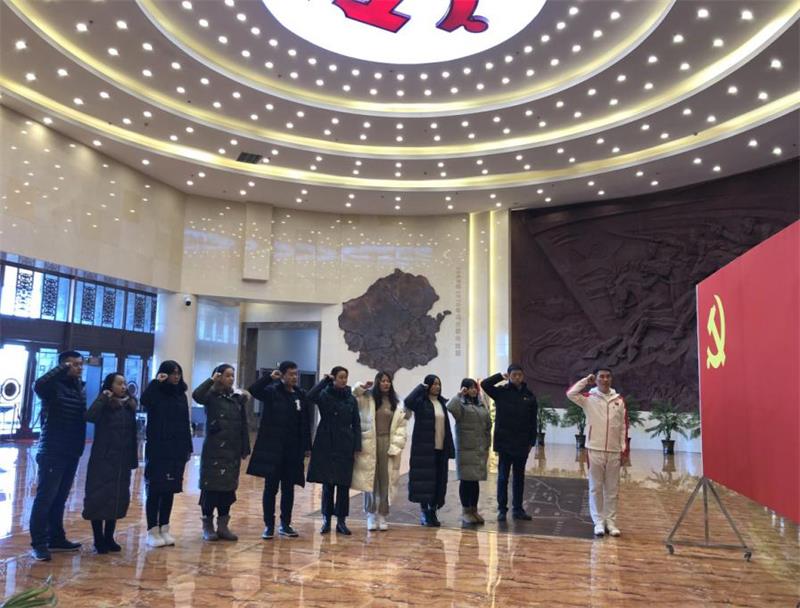 在参观完纪念馆所有展厅后,团总支书记范晓刚老师带领公司全体研究生党员同志在毛主席和乌兰夫同志的塑像前,面对党旗庄严宣誓,牢记入党誓词,坚定理想信念、对党忠诚、恪尽职守,向老一辈共产党员学习,争做新时代的优秀共产党员。