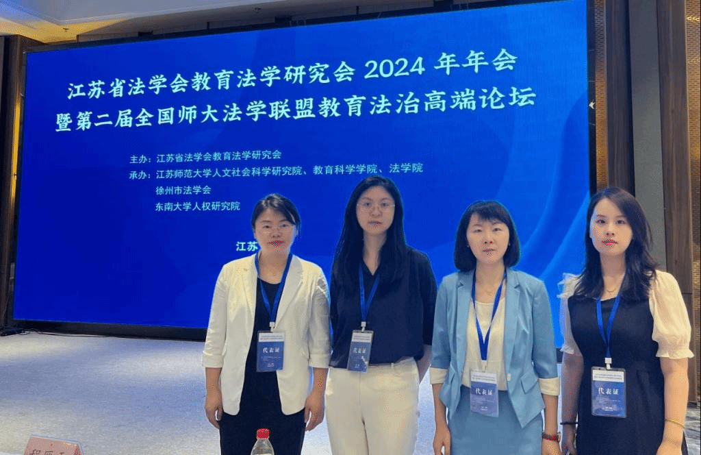 2024年6月9日,江苏省法学会教育法学研究会2024年年会暨第二届全国师大法学联盟教育法治高端论坛在江苏省徐州市成功举办。本次会议由全国师大法学联盟、江苏省法学会教育法学研究会主办,江苏师范大学人文社会科学研究院、教育科学公司、法公司,徐州市法学会,东南大学人权研究院承办,来自全国近二十个省(市)的180多名专家学者、法律实务工作者参加会议。法学系主任其乐木格、教师杨红、祝丽娟、白文静参加会议。