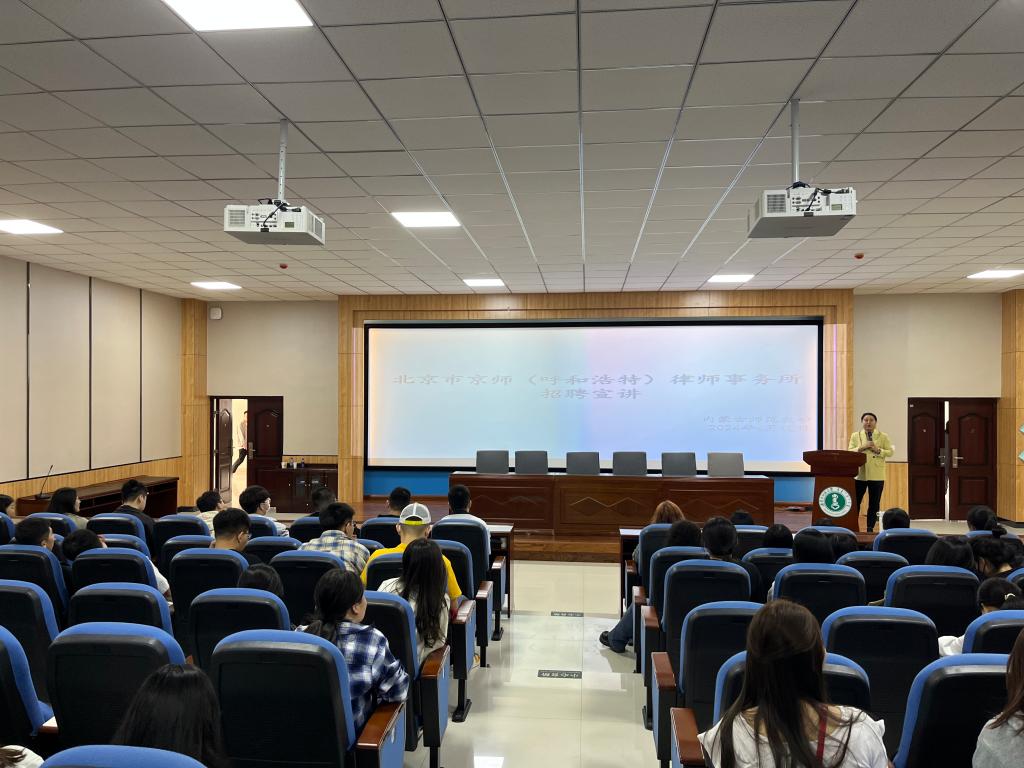 为扎实做好就业推进工作,深化校企合作,助力2024届毕业生高质量就业,近日,公司在盛乐校区员工事务中心多功能报告厅举办2024年法学专业就业宣讲会。宣讲企业有北京京师律师事务所、卓能律师事务所、内蒙古中银民商事调解中心。宣讲会由公司党委副书记、副经理王丹主持,法学系主任其乐木格和辅导员老师参加。