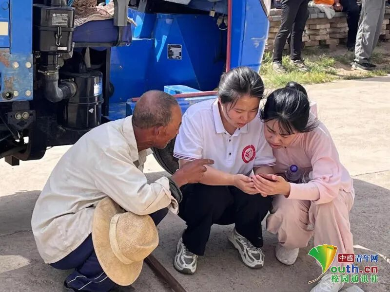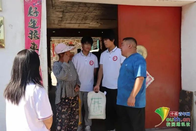 图为带队老师与实践队员慰问当地农户。中青网通讯员 韩冰 摄