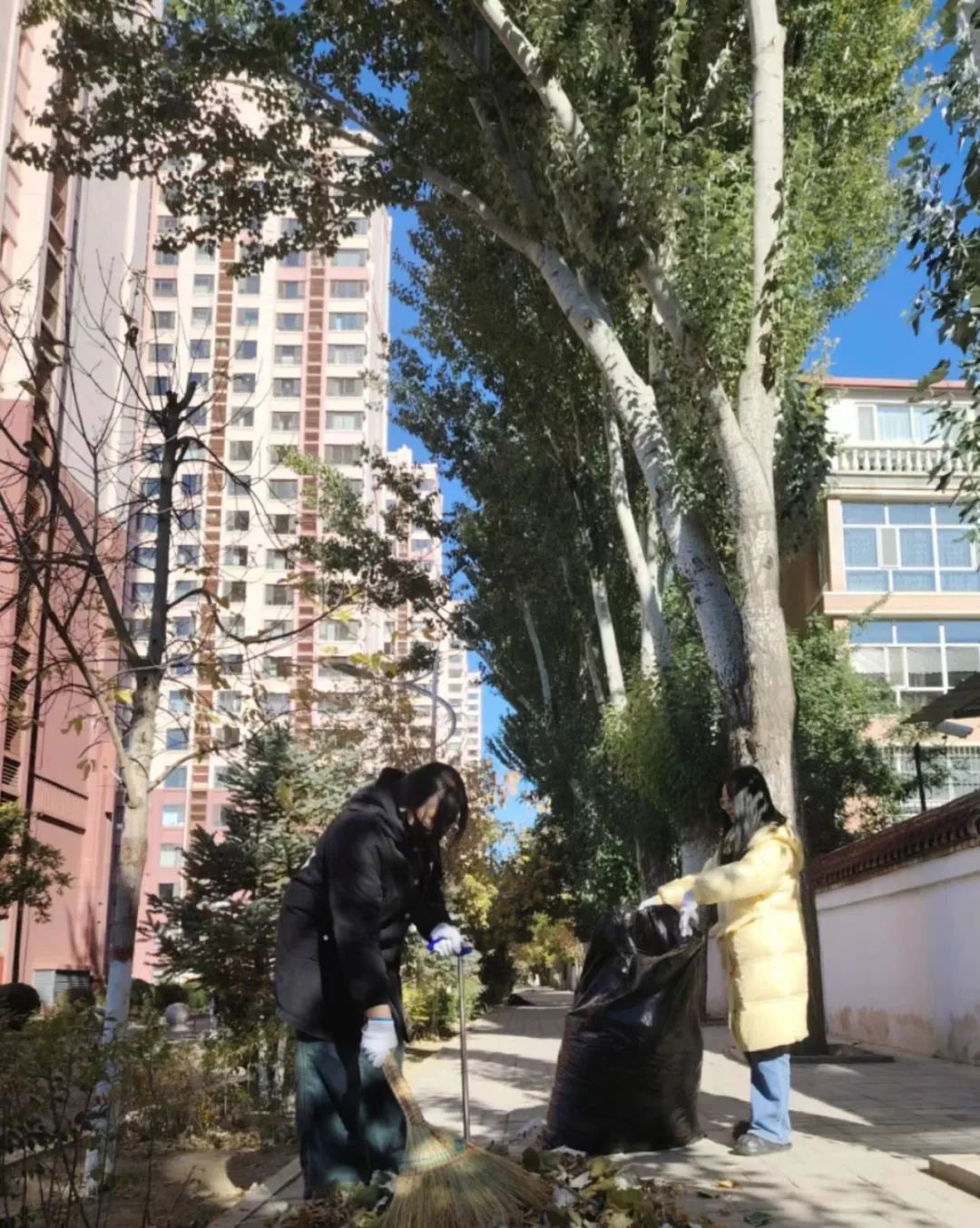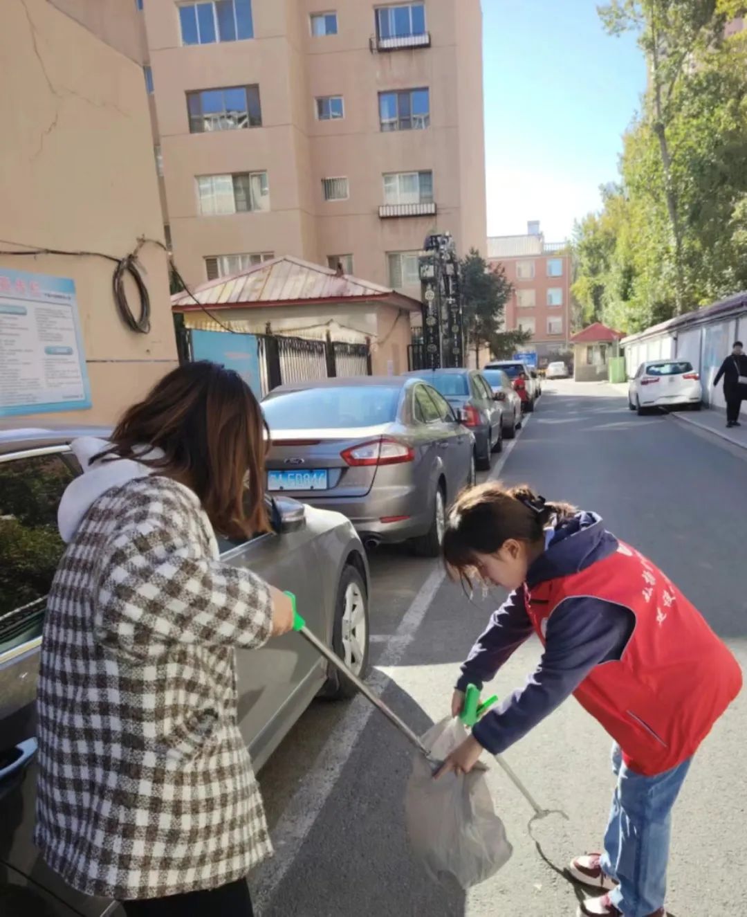 3044永利志愿者服务队同学到达赛罕区高院社区进行环境清扫活动。