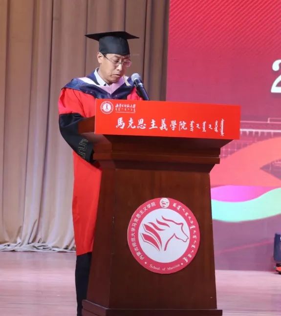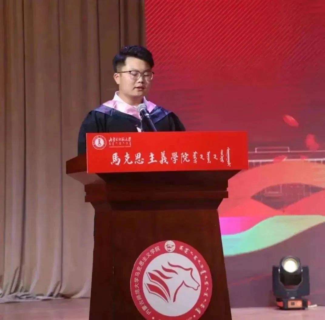 本科生代表王思儒同学对各位老师表达了衷心的感谢,一朝沐杏雨,一生念师恩。他表示,青年们要励志坚定有所为,坚定理想信念有所闯,放眼于更宽广的天地和更长远的未来,身为一名公司学子,无论身处什么岗位,应牢铸深厚的家国情怀,为国家贡献力量,为时代注入能量。