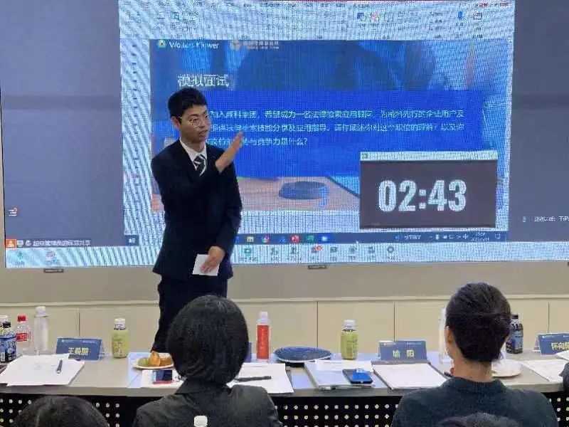赛事第三轮为“模拟面试”(20分),六个晋级参赛队在15分钟内与现场评委进行面对面的对话,模拟应聘现场,回答评委抛出的各种问题,非常考验选手们的应变能力。公司代表队由童臻尧同学进行模拟面试,本轮环节综合排名第二。