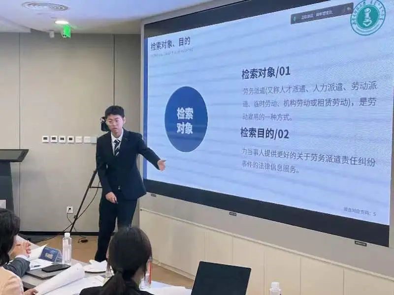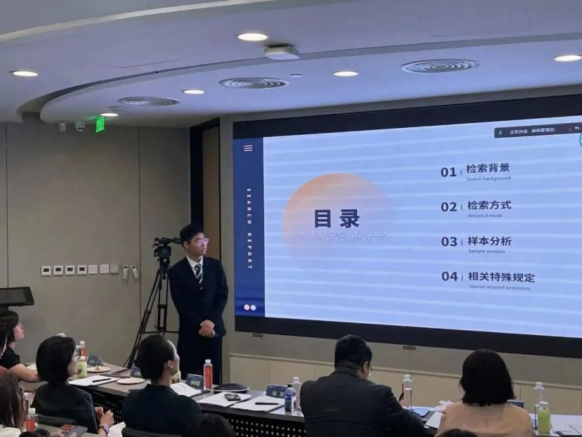 赛事第一轮为“法律成果展示”(30分),21个团队根据大赛组委会提前两周公布的题目,进行法律检索准备,并在5分钟内完成展示。评委根据选手的报告内容、PPT设计、现场讲解、检索方式等作出评分,选手根据法律检索成果展示与法律文书写作的综合得分晋级下一轮比赛。公司代表队由童臻尧同学进行演示,本轮环节综合排名第一。