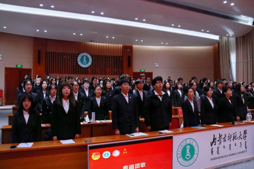 注:全体起立,奏唱团歌。