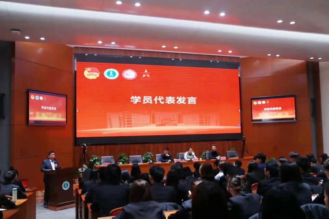 大会第五项:“青马工程”培训班学员代表发言。学员代表发言中提及团员青年应上好四门“必修课”:修心,提高理论素养、坚定理想信念;修性,锻造精神气质、实现筋骨强健;修能,苦练过硬本领、提高政治能力;修德,涵养高尚品德、引领风气之先。