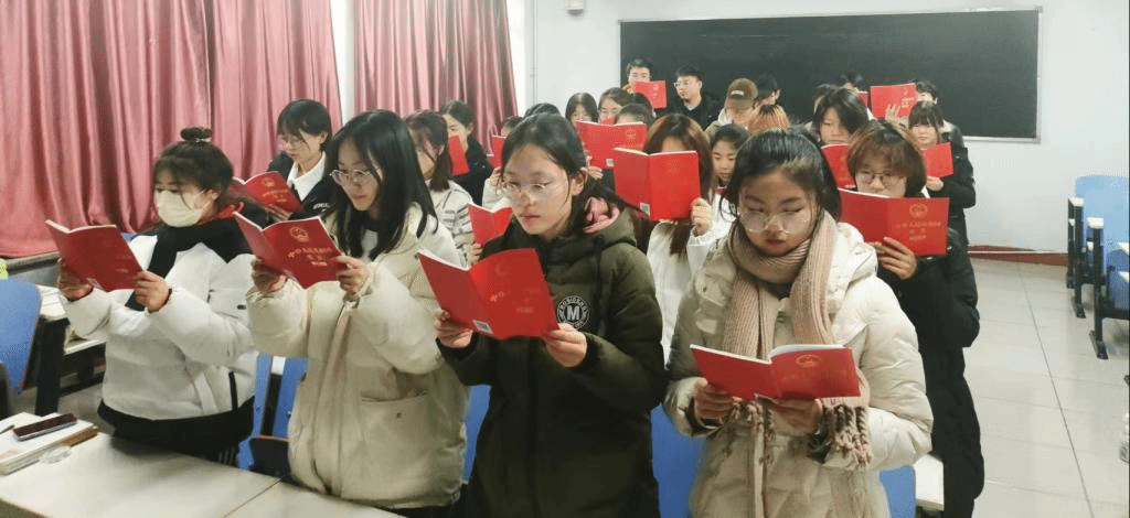 在团支书王宁同学带领下自行组织了宪法诵读活动