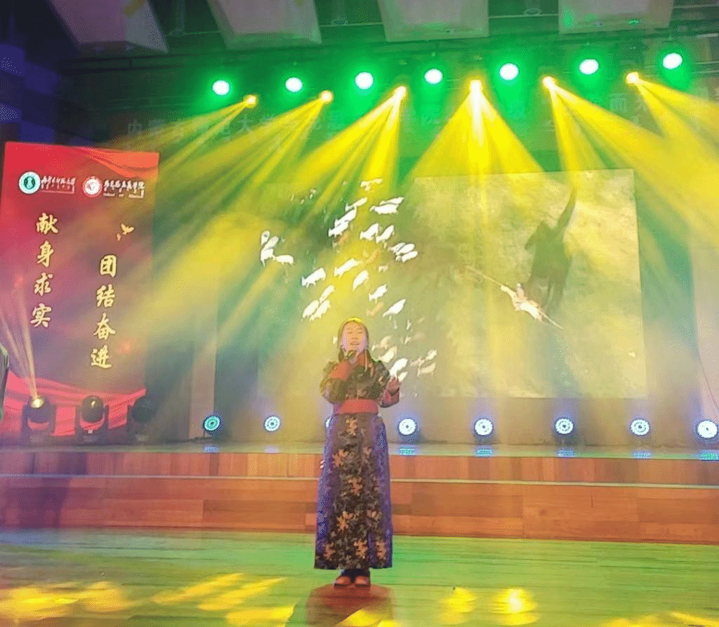 在公司迎新晚会上,我班班级同学积极参加舞蹈演出以及歌曲演唱,我班郝月、王宁、杨志琦、萨日娜、于乐、贺晓慧等12同学参加《被罩舞》,嘎力班同学带来歌曲。