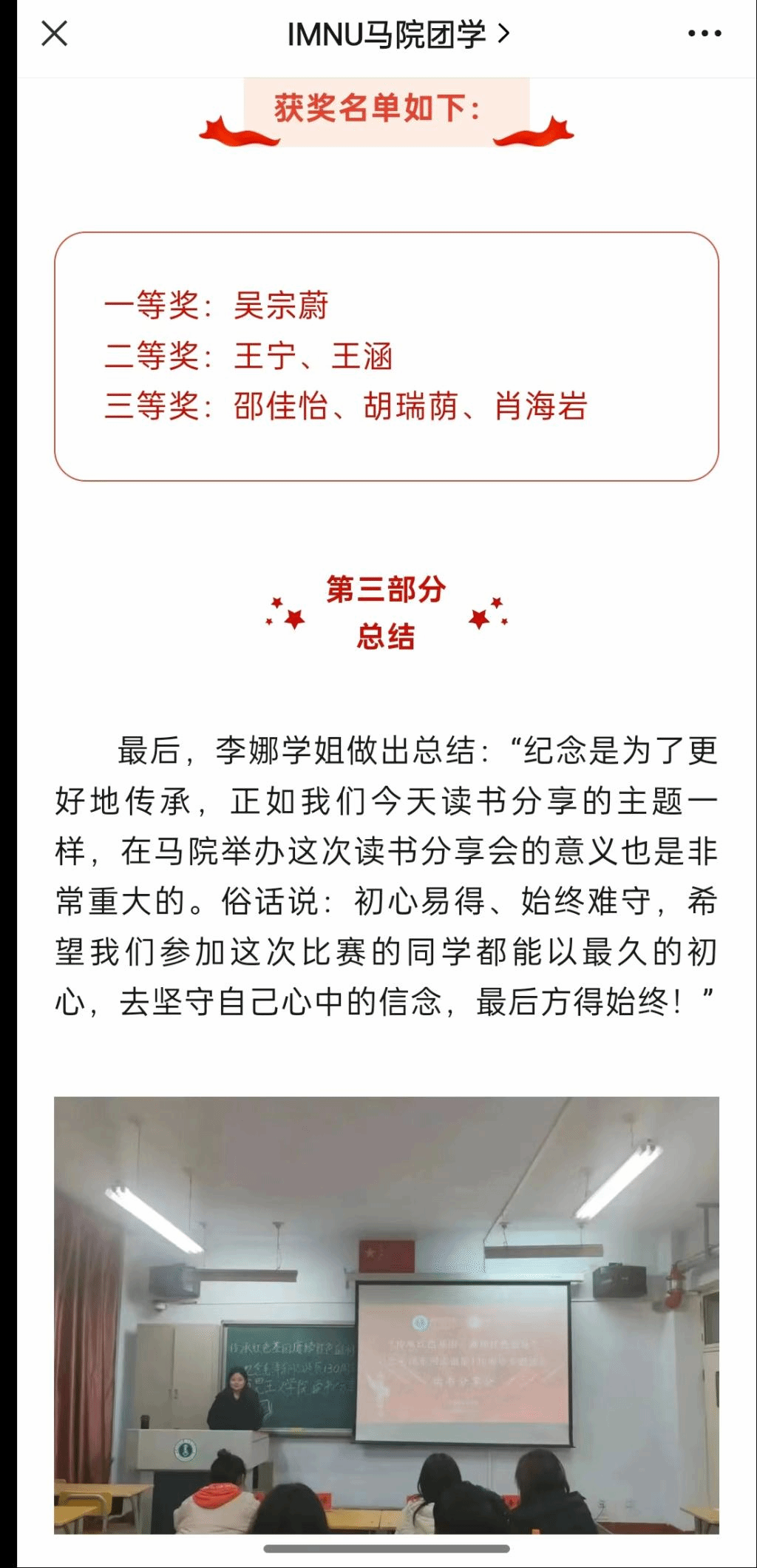 (五)3044永利纪念毛泽东诞辰130周年读书分享会中我班王涵和王宁同学荣获院级二等奖