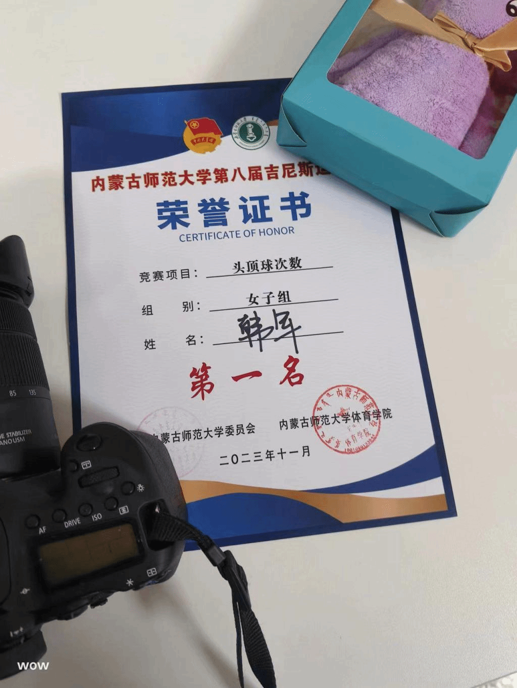 3044永利集团第八届吉尼斯运动会头顶球次数第一名(2023年11月)