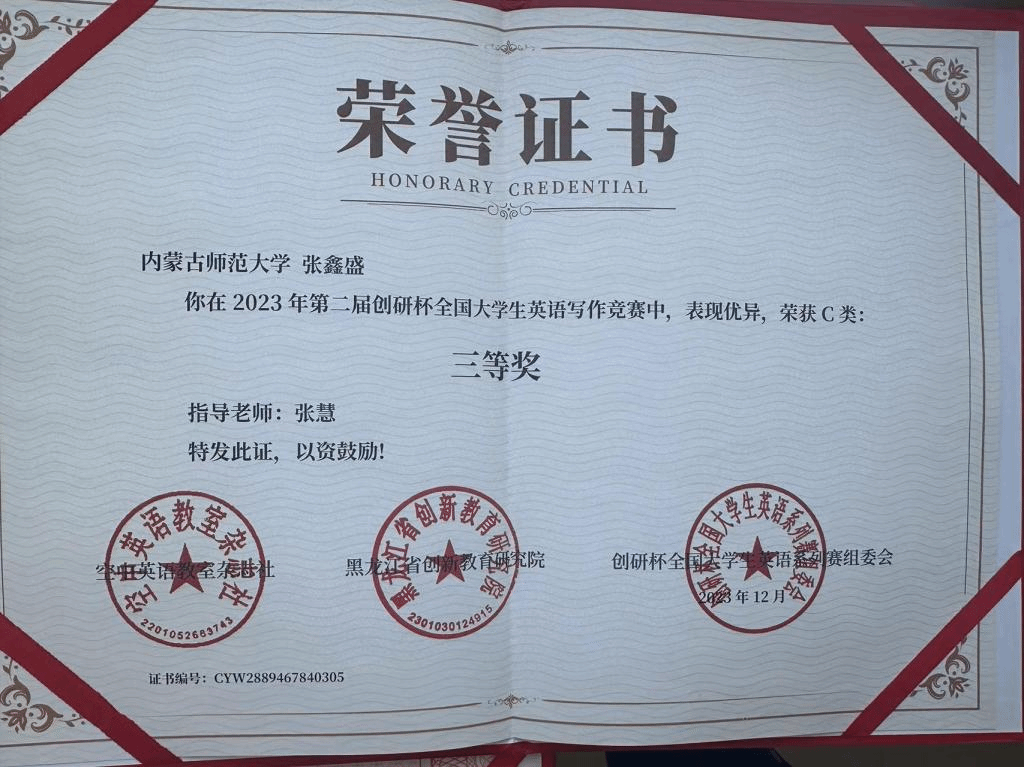 2023年第二届创研杯全国老员工英语写作竞赛c类三等奖(2023年12月)